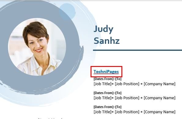 The next step is to fill in the areas the resume has to offer. If the resume template you chose doesn’t have the section names you need, you can easily change it by clicking on the text and typing something new. Don’t worry about accidentally choosing a different font or color. What you type will be in the same color and font displayed in the template.