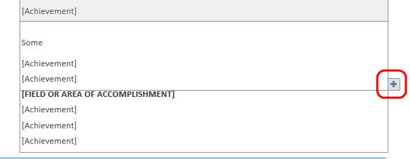 *Some areas may have a plus sign (+) where you can add additional sections.
