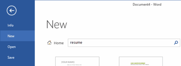 The latest version of Microsoft Word surely has the resume template you’re looking for. The template styles are not in plain sight when you open Word, so you’ll need to click on the New option to the left and then type resume in the search bar.